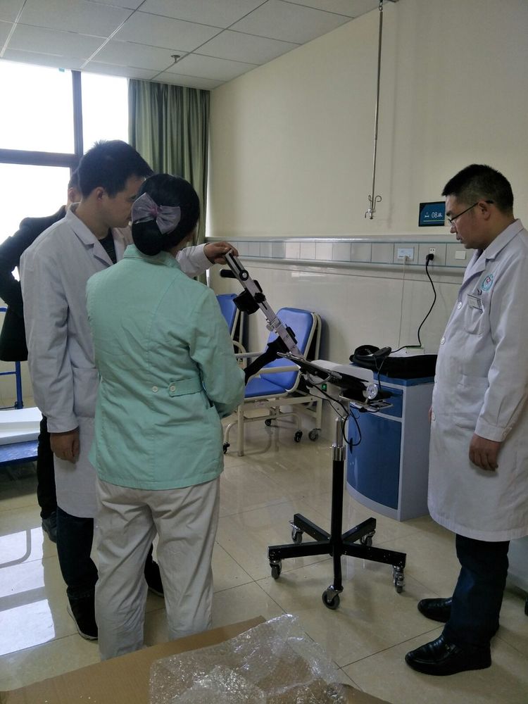2017年12月26日下午15点在骨科理疗室组织学习骨科新引进的功能锻炼的机器,我院主任陈行灿和护士长冉霞及主要负责做康复理疗的医生田云君在厂家的指导下学习新设备的操做。